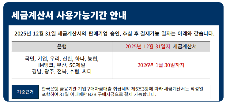 2025년 12월 세금계산서 사용가능기간 안내